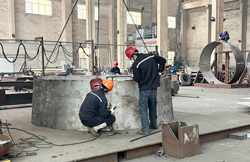 公司擁有現代化的新廠房車間建筑面積約15000平方米,及相應的制造和檢測設備,擁有¢10000封頭旋壓機組¢6500封頭旋壓機組、¢3200封頭旋壓機組、5000T雙動油壓機、2000T雙動油壓機、1000T雙動油壓機、500T雙動油壓機及其配套的自動焊接設備和自動數控切割設備,封頭坡口機、及其整套的封頭制造配套設施,如反射式燃油、燃氣封頭加熱爐,電加熱封頭回火爐;封頭測厚儀等檢測計量工具齊全,理化室、探傷室、焊試室、焊材一、二級庫(烘烤去濕設備)、零配件倉庫達到規范要求。